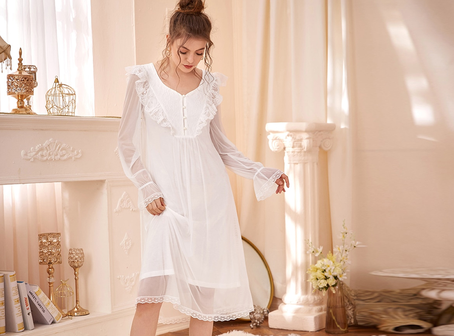 All of this is no longer a problem, though, because there are plenty of places where you can now buy a Victorian-style nightgown brand new and even made to measure. Now you can experience the warm, cozy sensation of wearing pure white cotton to bed every night at a price you can afford. Imagine sliding between your pure white sheets at night whilst wearing a long crisp cotton creation all of your own. if you want to go all the way there are some beautiful white cotton housecoats available in the same Victorian nightdress style. Both garments would probably be trimmed with delicate feminine satin bows and beautiful embroidery Anglaise lace.